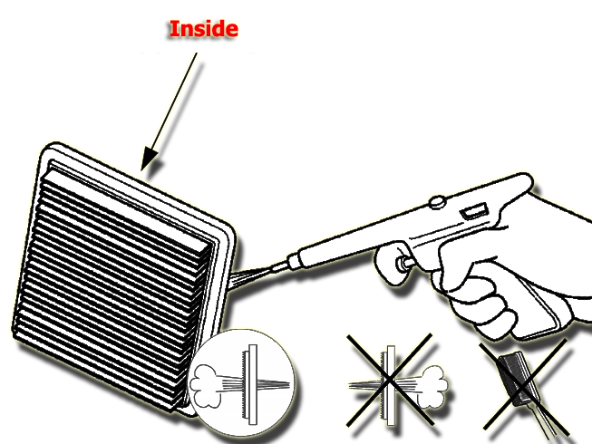 Depending on the material of the air filter, cleaning procedure it may be different. If a filter paper, then it should be cleaned only by dry method, air, if the filter of the foam, it can be wet cleaned.